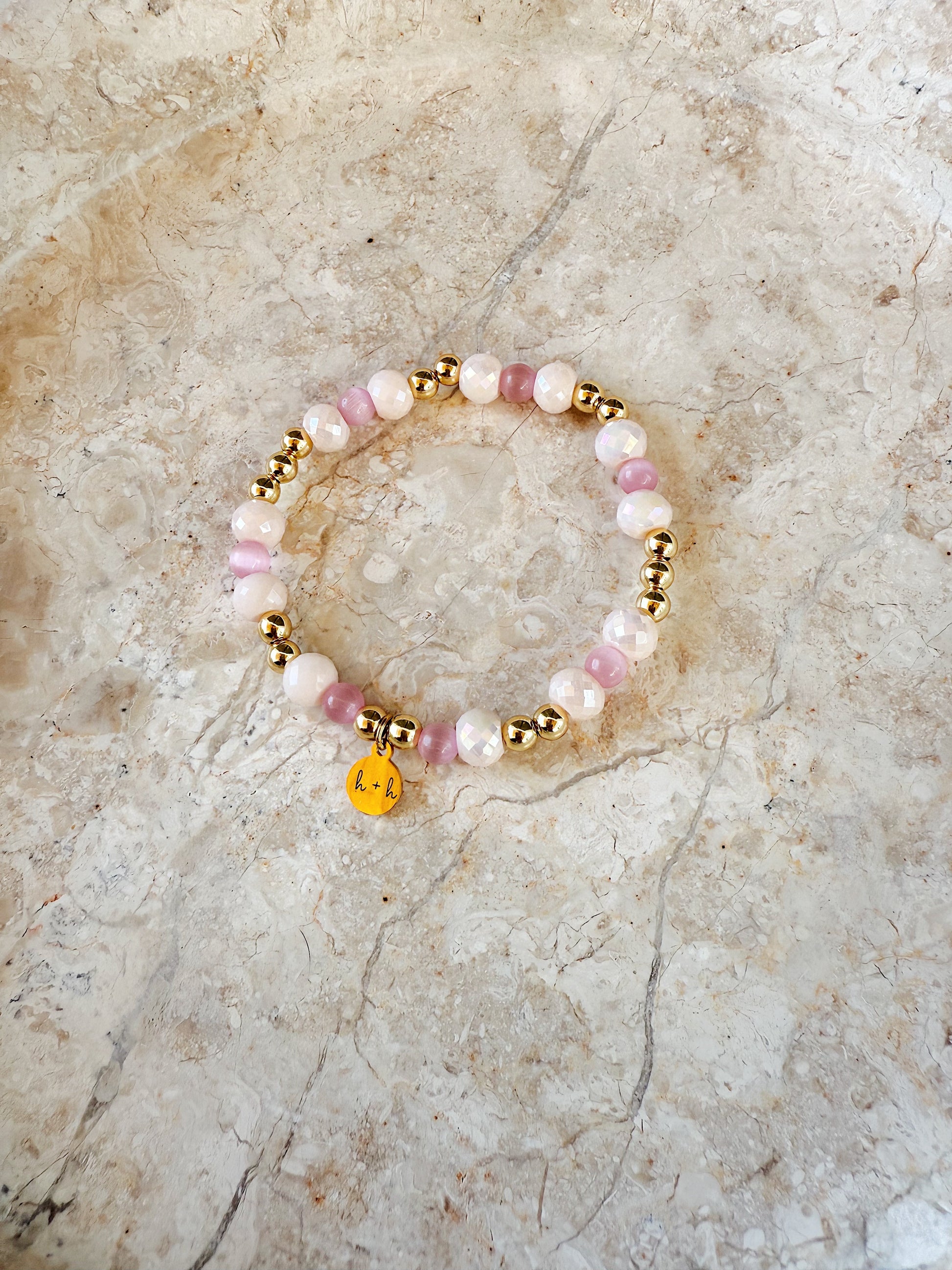 - 8 mm glass silverite champagne beads + 6mm blush pink beads + 14K gold filled beads