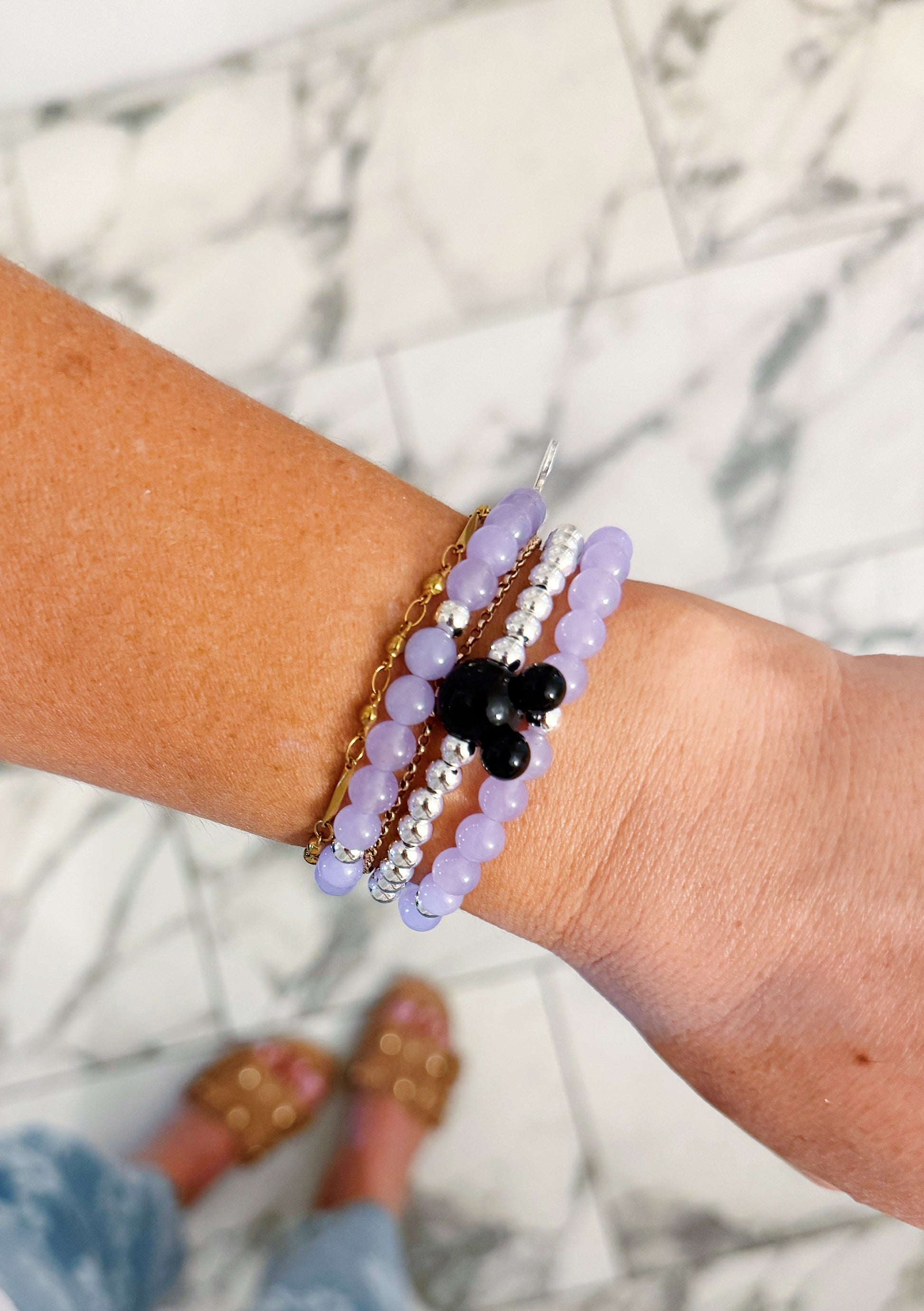 - Hand beaded on high performance 1mm elastic for a slight stretch to easily roll on and off your wrist