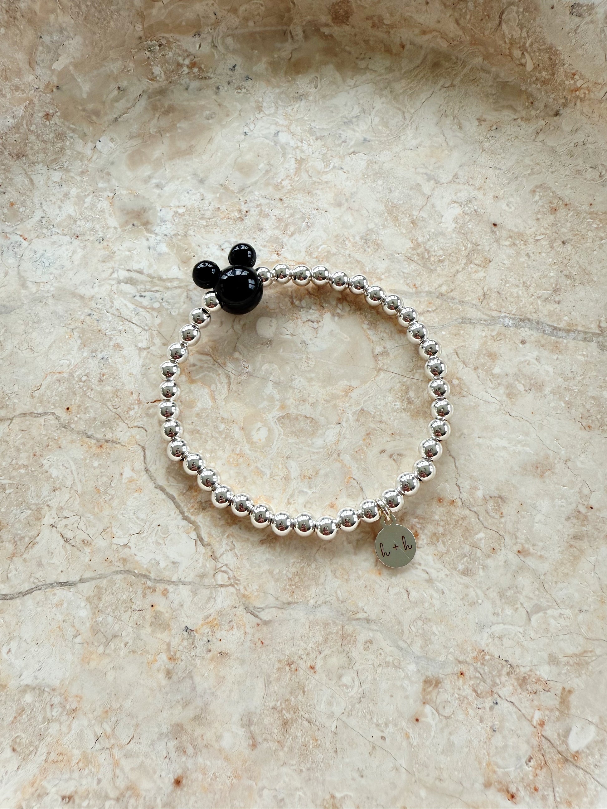 - A chic + classy black acrylic mouse shaped silhouette bead and 5mm silver plated beads - perfect for your trip to the happiest place on earth!