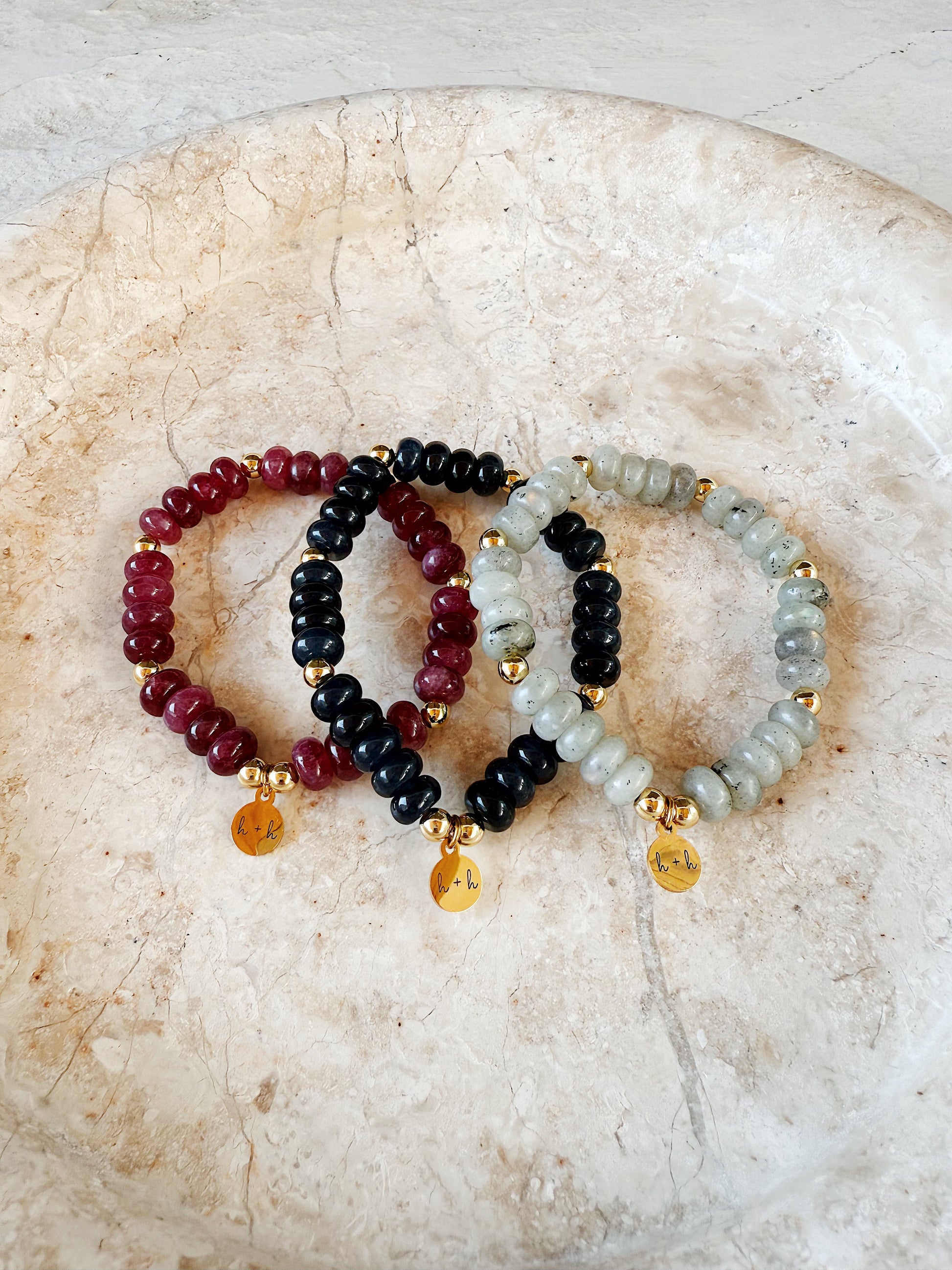 - Hand beaded on high performance 1 mm elastic for a slight stretch to easily roll on and off your wrist