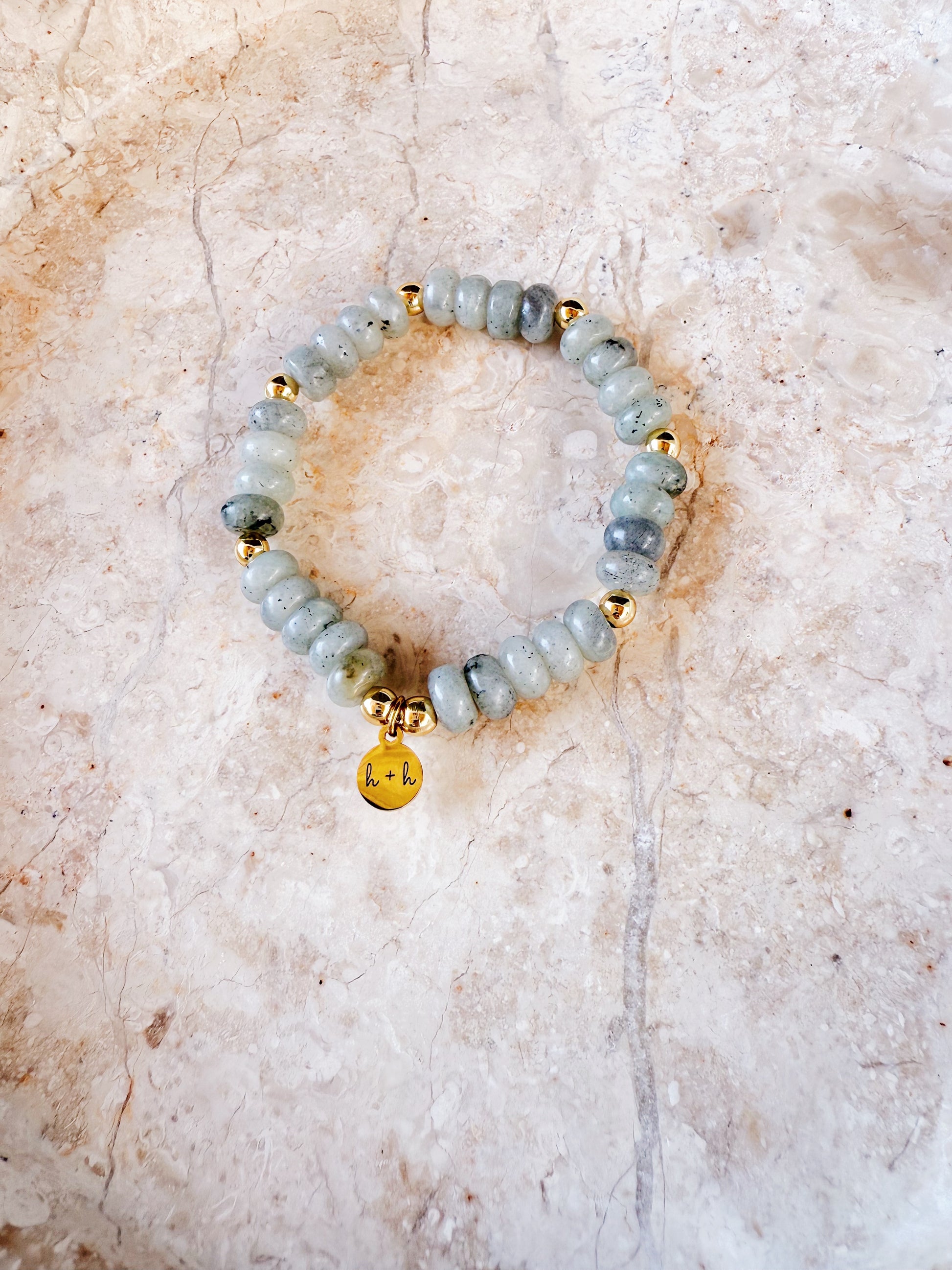 - This gorgeous light grey bracelet has speckles of black randomly throughout the bracelet and make it a great neutral addition to any arm party.